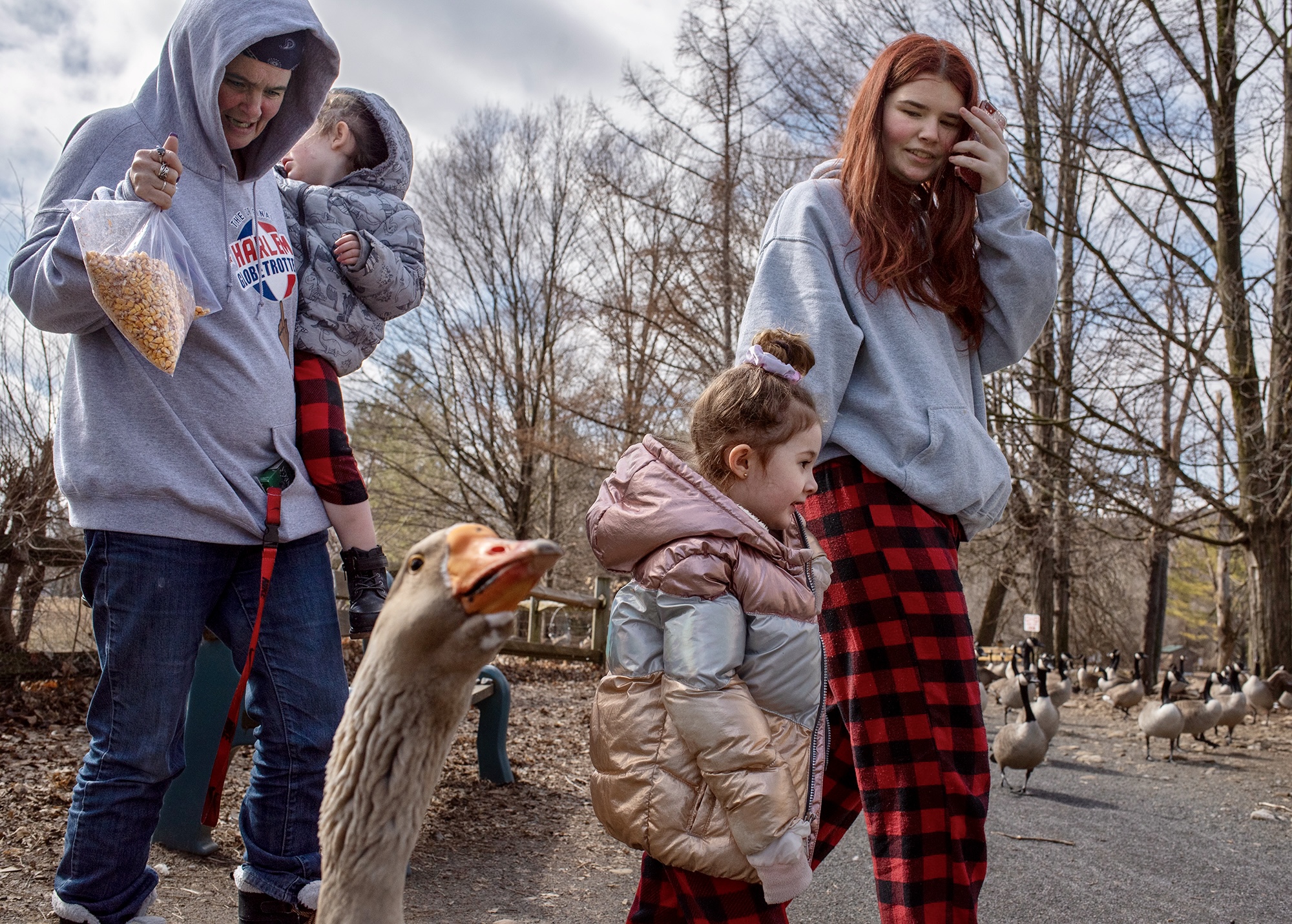 On Tuesday, she brought her daughter, Jessa Palmer, 15, and two granddaughters — Myla, 3, and Aleigha, 4 — to feed geese at the pond, located in Syracuse’s Valley neighborhood. Rachel Palmer wants her daughter and granddaughters to have the same experience she had as a child.